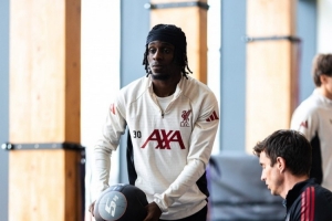 体育资讯9月10日讯 利物浦官方社媒晒出弗林篷的训练照,照片的弗林篷正在进行恢复训练。