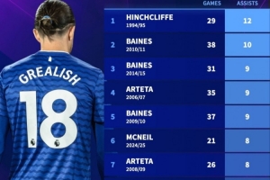 开局3场4助!格拉利什有望冲击埃弗顿队史英超单赛季12次助攻纪录