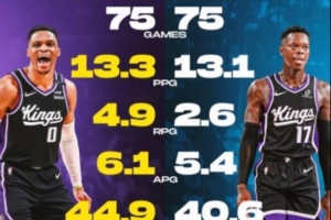 威少上赛季出战75场,场均13.3分4.9板6.1助攻,三项命中率44.9/32.3/66.1%