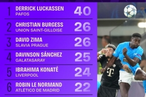 本赛季欧冠赢得对抗榜:马修斯-席尔瓦33次第一,佩德里21次第八